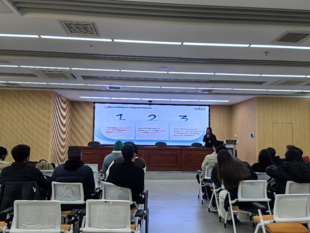 School of Management hosted an engaging and dynamic recruitment fair for its international MBA students on December 11 at 2:00 PM in Room 1501 of the Sanjiang Building. The event aimed to provide career development opportunities for international students and strengthen connections between the university and prominent global companies. The fair witnessed a successful turnout and served as a productive platform for interaction between the students and Zhongtian Technology Group (ZTT), a global leader in the power and telecommunications industry.