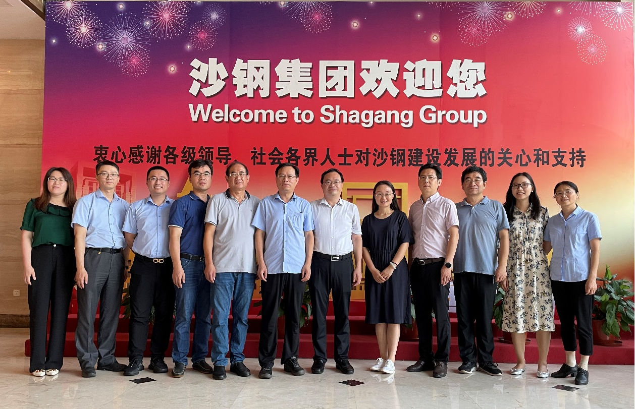 在公司会议室,沙钢集团副总工程师黄久贵,沙钢钢铁研究院副院长胡显军、总工办副主任张华珍、沙钢玖隆电子商务常务副总经理常炳帅(电子商务2007届校友)、组织人事处主管潘丽花等参加座谈,双方围绕拓展相关行业领域的科技创新资源、深化人才培养与毕业生供需合作、探讨搭建校企战略合作平台等主题开展了深入的交流和探讨。