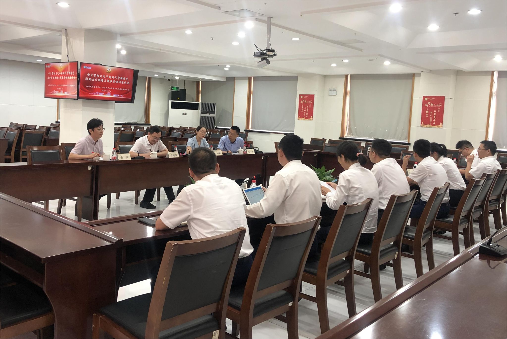 近日,开云app官方官网党委书记王丽敏、院长杜建国教授,副院长金帅教授、MBA中心副主任陈洋一行4人前往江苏大丰农村商业银行,开展学习贯彻习近平新时代中国特色社会主义思想主题教育调研活动。此次活动通过深入用人单位围绕研究生人才培养及校企合作等主题展开调研。调研团队首先与来自大丰农商行的江苏大学MBA校友进行了座谈,随后与大丰农商行董事长张洪国先生就校企合作进行了交流。