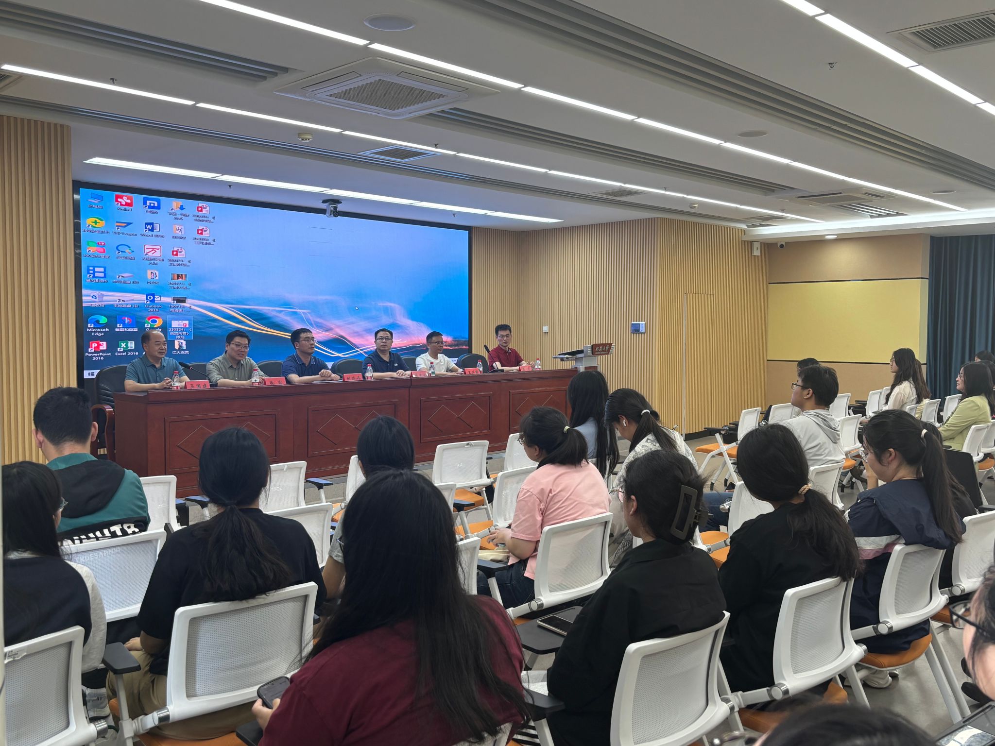 分享会上,马国建对校友们的返校表示热烈欢迎。南通斯泰纺织品有限公司董事长王兴国校友首先回顾了20年三次企业转型的经历,而第三次转型尤为突出:回归制造业,用工匠精神重构以精细化生产为主的高端家纺工厂。他强调以人为本,鼓励学弟学妹学好管理学知识,为将来的职业生涯打好基础。随后,深圳市洛克空间科技有限公司总经理曾忠金校友分享了2座城市、2份工作和1个行业的创业经历,以及“为用户提供创新而有趣的数码生活产品”理念,他鼓励学弟学妹要保持热爱,指出成功的关键要素在于能力、热情和思维方式。此外,南京银行无锡分行副总经理刘晓丹校友讲述了自己从银行柜员到分行副总经理的成长经历,勉励学弟学妹要脚踏实地,学会融合思维。镇江市工业和信息化局综合规划处处长徐宙校友鼓励学弟学妹要了解和把握我国经济发展面临的形势和趋势,尽早制定个人发展规划,同时要有强大的内心。最后,吉利汽车新能源车型产品经理陈凡校友结合工作经历讲述EXCEL编程和统计分析、PPT制作技能对于管理专业学生的重要性,并提供了找工作投简历的有效渠道。
