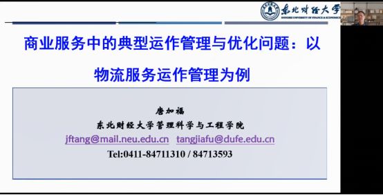 9月24日上午,东北财经大学唐加福教授做客开云app官方官网办学40周年系列名家论坛,为我校师生做了一场关于《商业运作管理中的典型优化问题》的线上学术报告,开云app官方官网骨干教师、研究生等百余人参加。报告会由开云app官方官网院长杜建国教授主持。