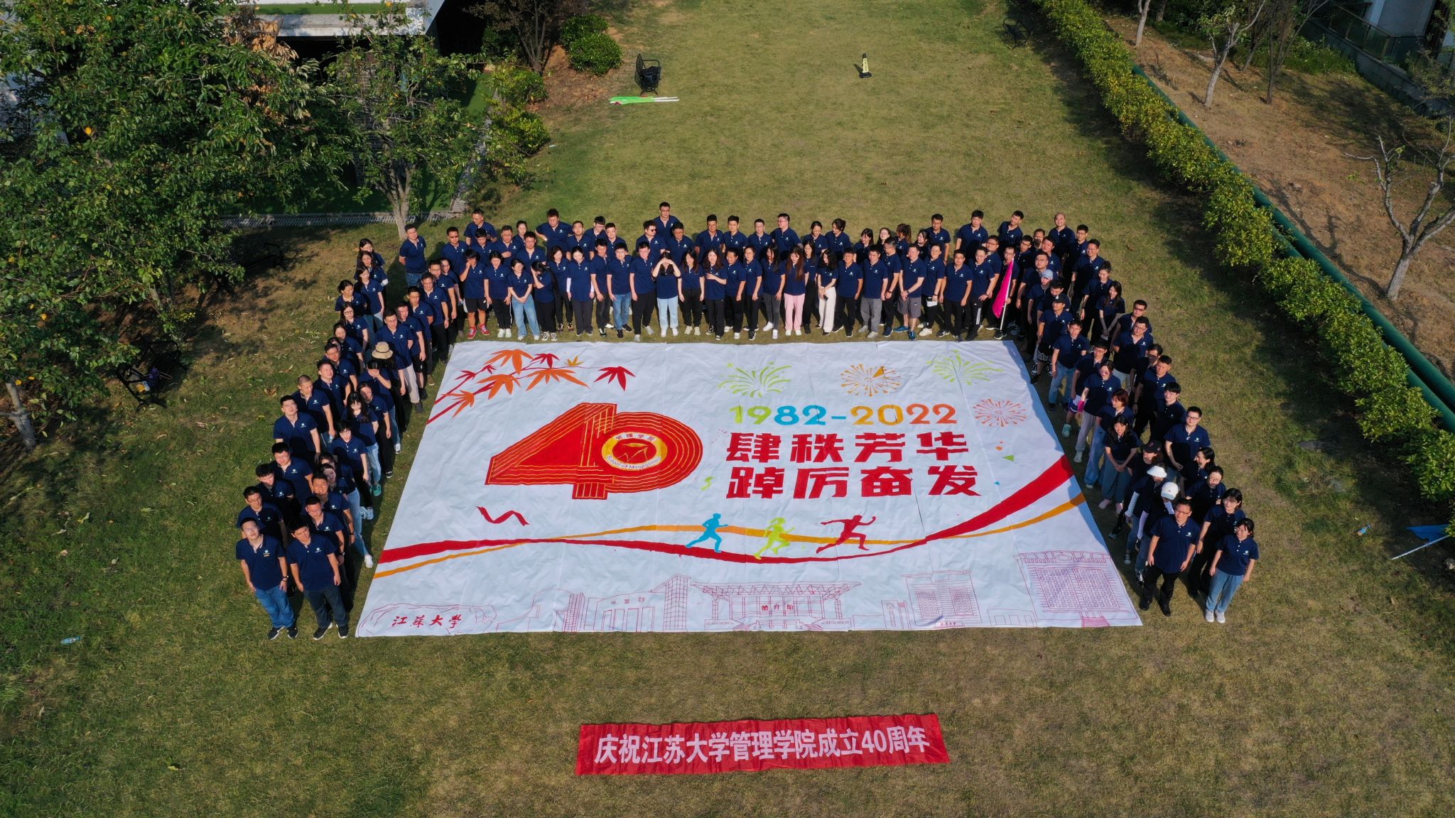 肆秩芳华,踔厉奋发”,今年适逢开云app官方官网建院40周年,参加拓展训练的2022级MBA学员通力协作完成巨幅彩画,祝福学院发展,激励自己前行。